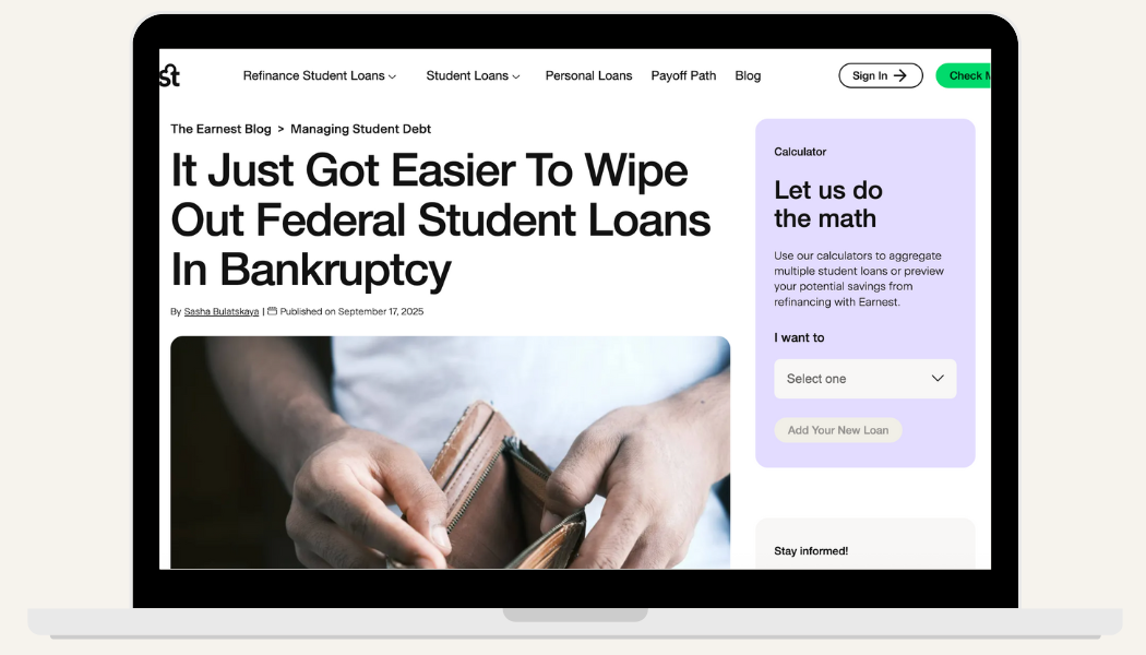 The Earnest Blog is a resource where people can learn everything they need to know about student debt, but it was untapped. I doubled article production, collaborated with our SEO team, and utilized the latest tools to create content that helps people with student debt.